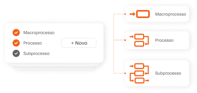 Macroprocesso, processo e subprocesso.